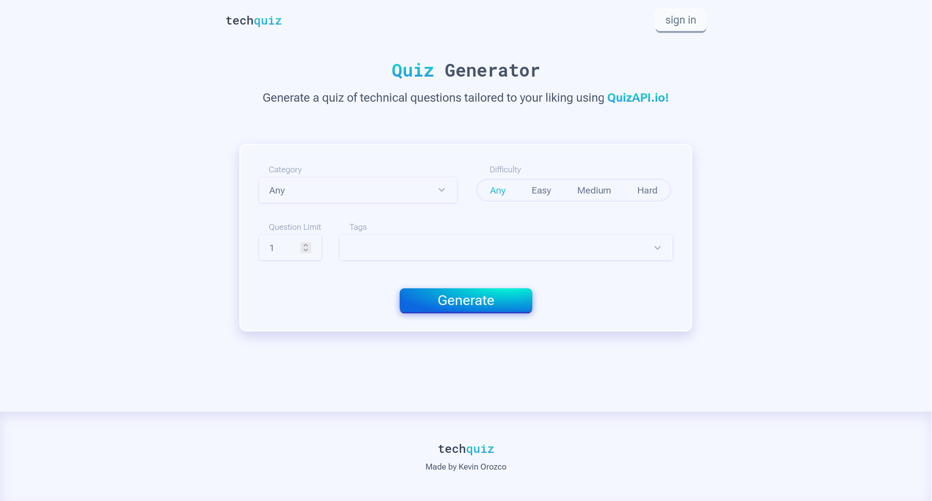 Full-Stack application that uses QuizAPI.io to generate technical question quizzes. Users can save and edit their quizzes.