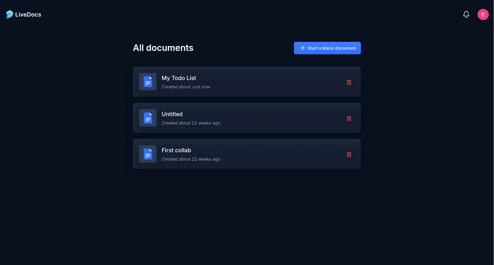 Full-Stack application that allows users to create, share and collaborate on documents in realtime using liveblocks .